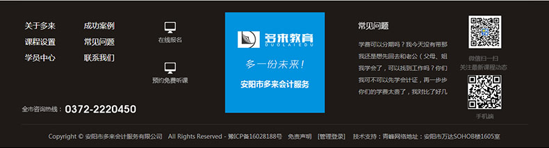 安陽市多來會(huì)計(jì)服務(wù)有限公司是由河南多來教育集團(tuán)和河南因心財(cái)務(wù)之家領(lǐng)導(dǎo)下首創(chuàng)一站式會(huì)計(jì)培訓(xùn)、企業(yè)注冊(cè)、代理記賬、商標(biāo)注冊(cè)、品牌策劃營(yíng)銷等于一體的多元化企業(yè)會(huì)計(jì)服務(wù)平臺(tái)。致力于為中小型企業(yè)服務(wù),資源整合,培訓(xùn)出會(huì)計(jì)人才,為中原崛起助力、打造河南具影響力的企業(yè)服務(wù)平臺(tái)。