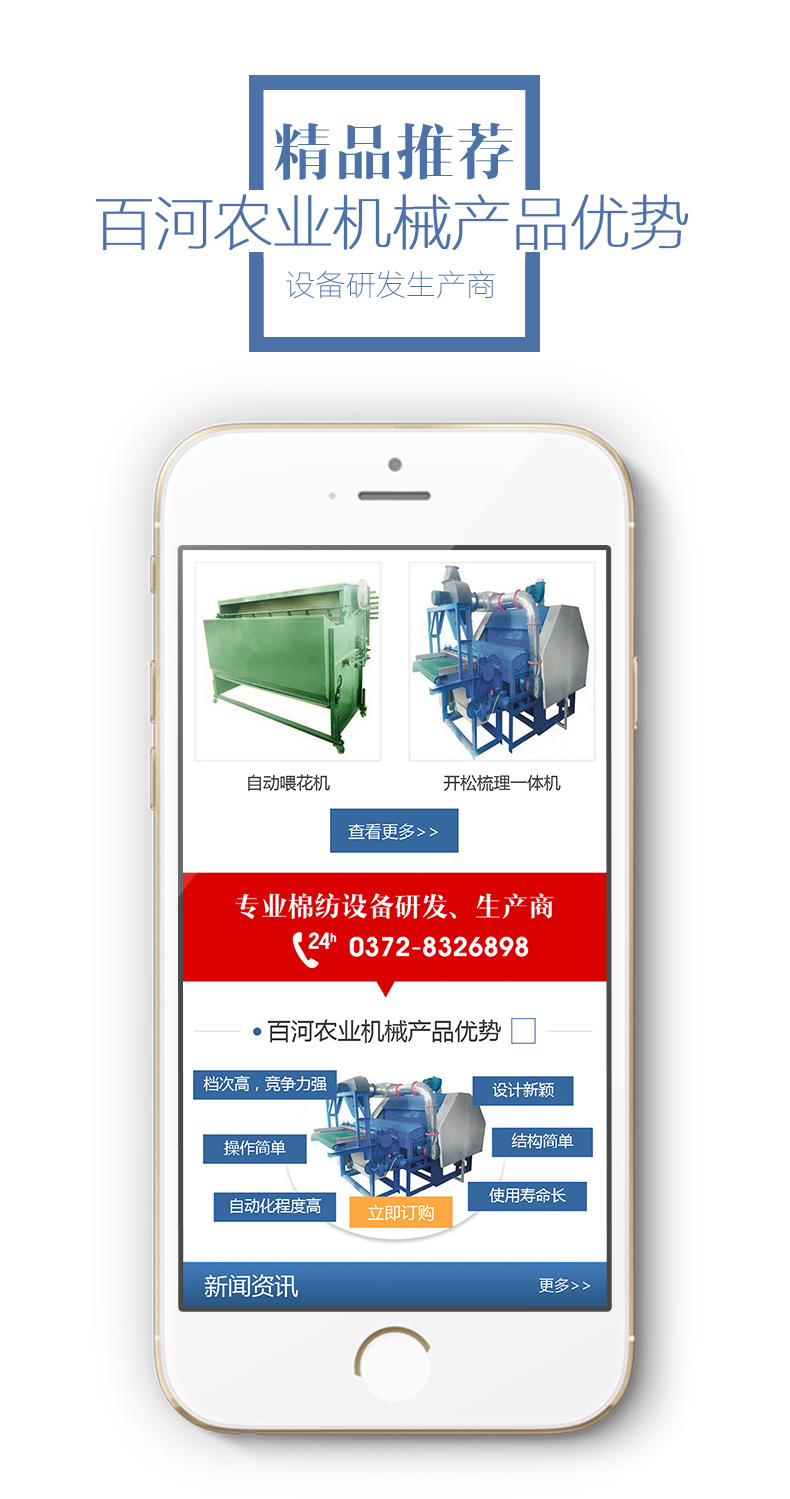 河南百河農(nóng)業(yè)機械有限公司主要生產(chǎn)彈花機、精細彈花機、大型吸塵彈花機、拉絲面彈花機、寬幅彈花機、梳理機、開松梳理一體機、精細梳理機、梳棉機、電腦絎縫機、絎縫機、全移動絎縫機、引被機、直絎機、軋花機、20片軋花機、鋸齒軋花機、揉棉機、無網(wǎng)被揉棉機、升降揉棉機、開松機、小型開松機、鋪網(wǎng)機、自動喂花機等家紡機械。
